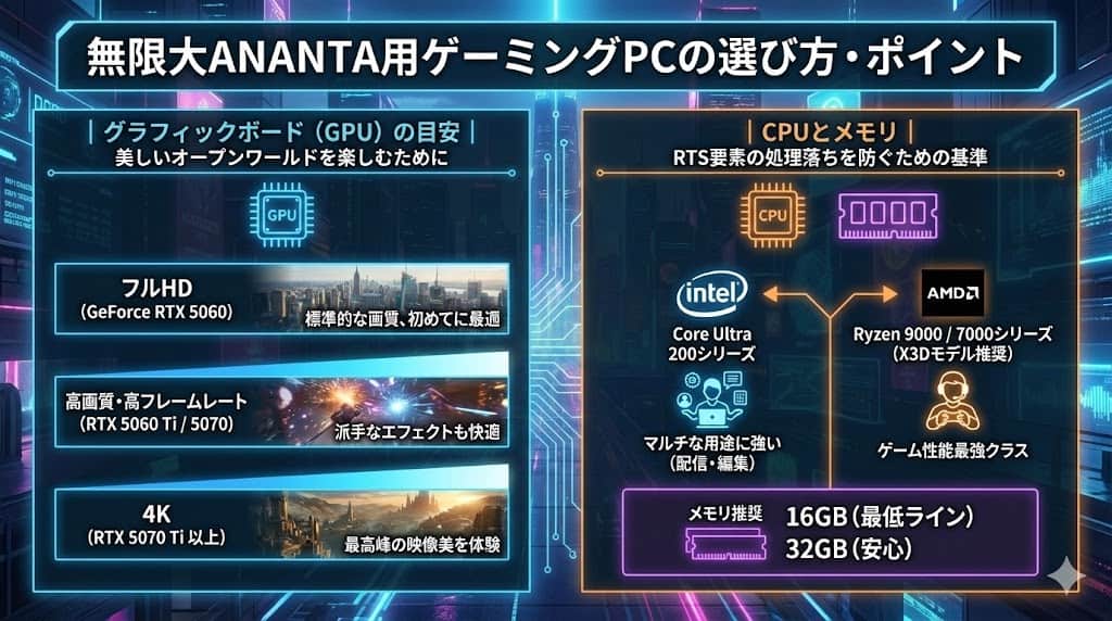 無限大ANANTA用ゲーミングPCの選び方・ポイント