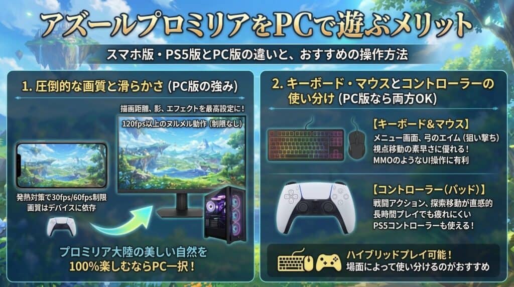 スマホ版・PS5版とPC版の違い(画質・操作性)