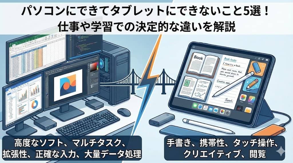 パソコンにできてタブレットにできないこと5選!仕事や学習での決定的な違いを解説