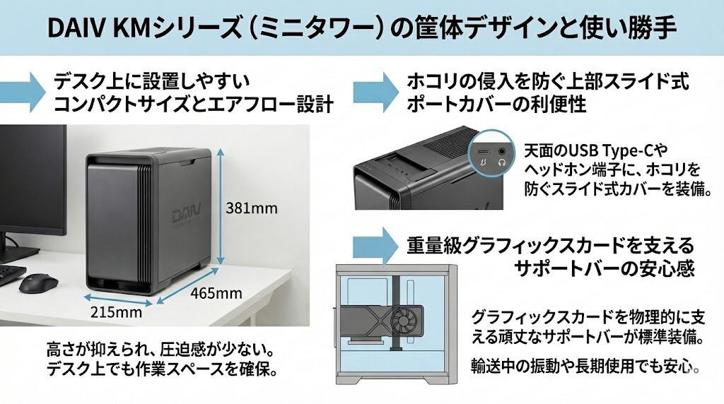 DAIV KMシリーズ(ミニタワー)の筐体デザインと使い勝手