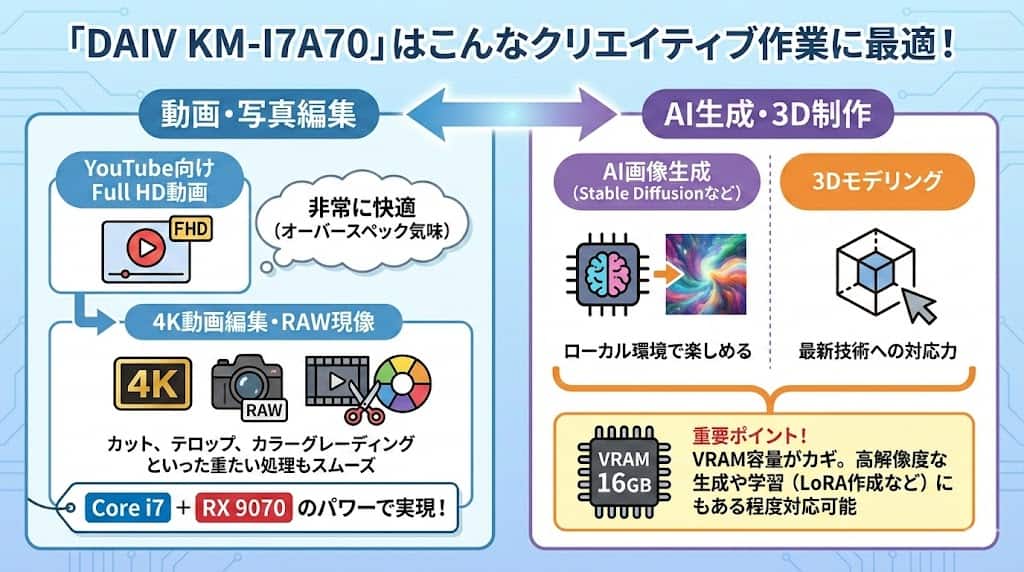 DAIV KM-I7A70はどのようなクリエイティブ作業に適しているか