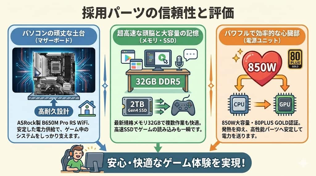 採用パーツのスペック詳細から読み解く信頼性と評価