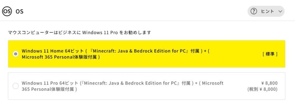 ゲームや動画視聴、一般的な事務作業がメインなら、標準の「Windows 11 Home」で全く問題ありません。「Pro」は会社のネットワーク接続など、特殊なビジネス機能が必要な人向けです。 無理にアップグレードする必要はなく、そのままで大丈夫です。標準で人気ゲーム「Minecraft」も付属しており、非常にお得です。