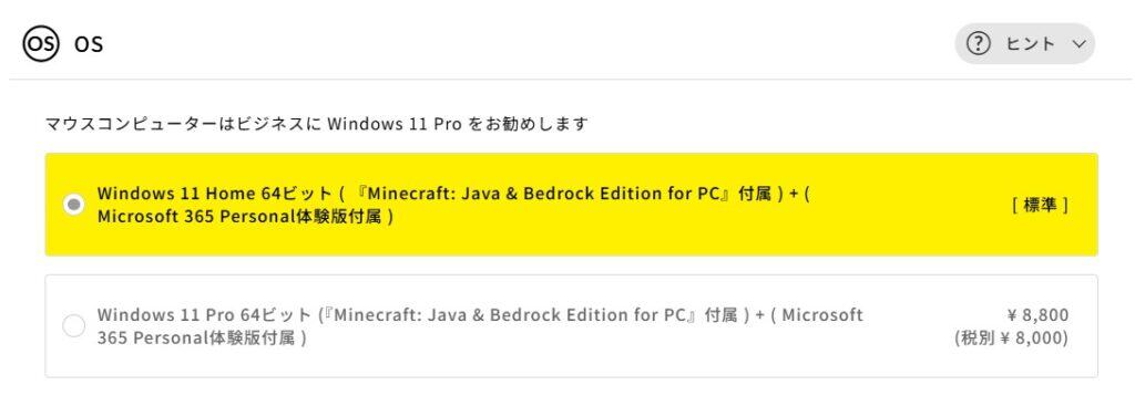 標準の「Windows 11 Home」で、ゲームや動画視聴など一般的な使い方はすべてカバーできます。「Pro」は会社のネットワークに繋ぐなど特殊な用途向けです。通常の利用なら追加料金を払って変更する必要はありません。
