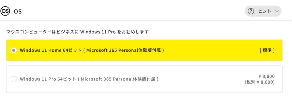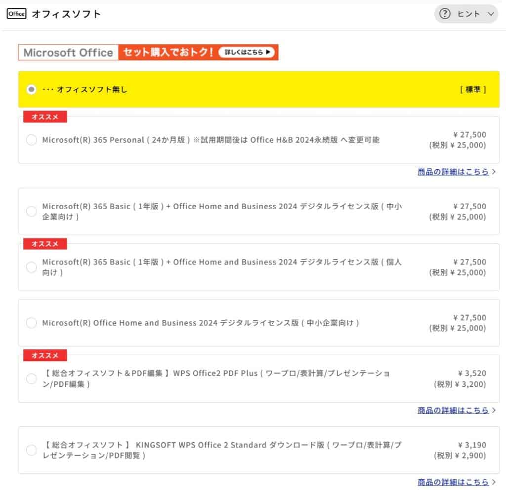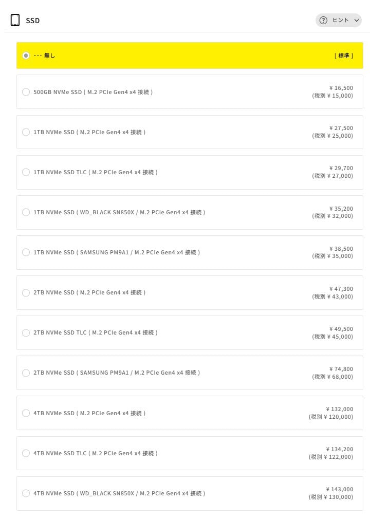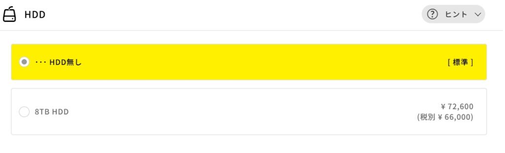 標準構成では「HDD無し」となっており、ほとんどの方はこのままで問題ありません。