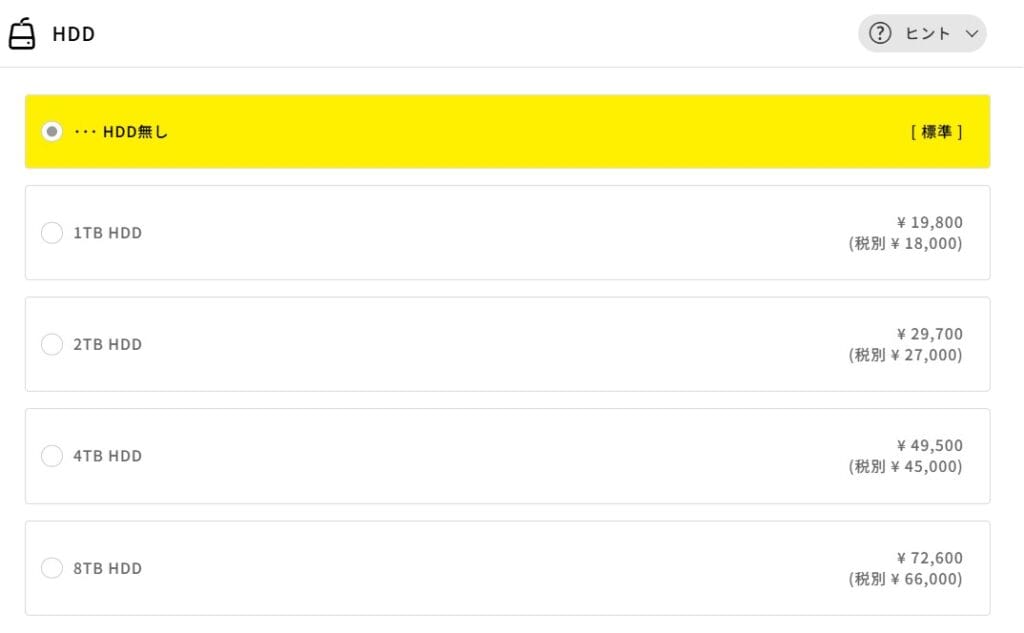 ただし、動画ファイルや写真などの大容量データを大量に保存したい方は、コスパの良いHDDを検討してもよいでしょう。とはいえ、ここでの追加価格は市販のHDDより割高です。