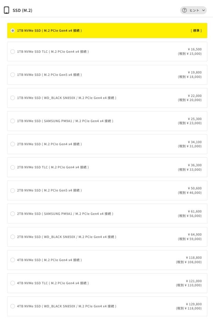 【SSD(M.2)】2TBへの増量がおすすめ