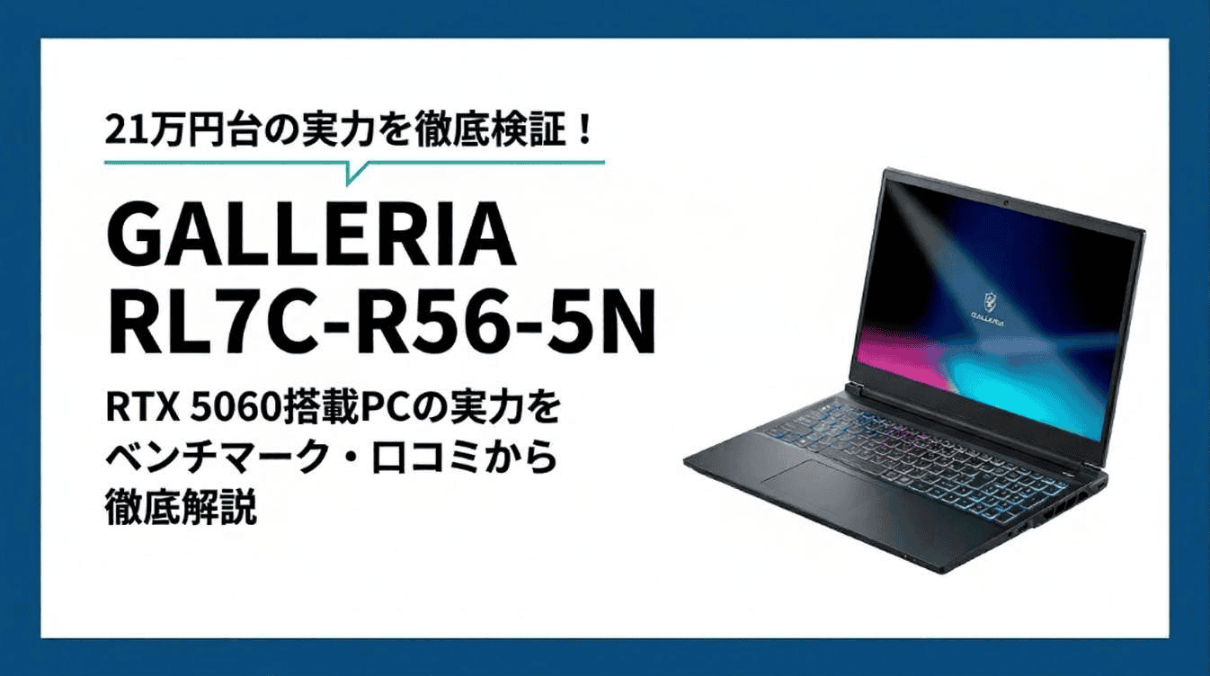 GALLERIA RL7C-R56-5Nは、RTX 5060 Laptop + Core i7-14650HXという強力な組み合わせを219,980円で手に入れられる、コストパフォーマンスに非常に優れたゲーミングノートPCです。