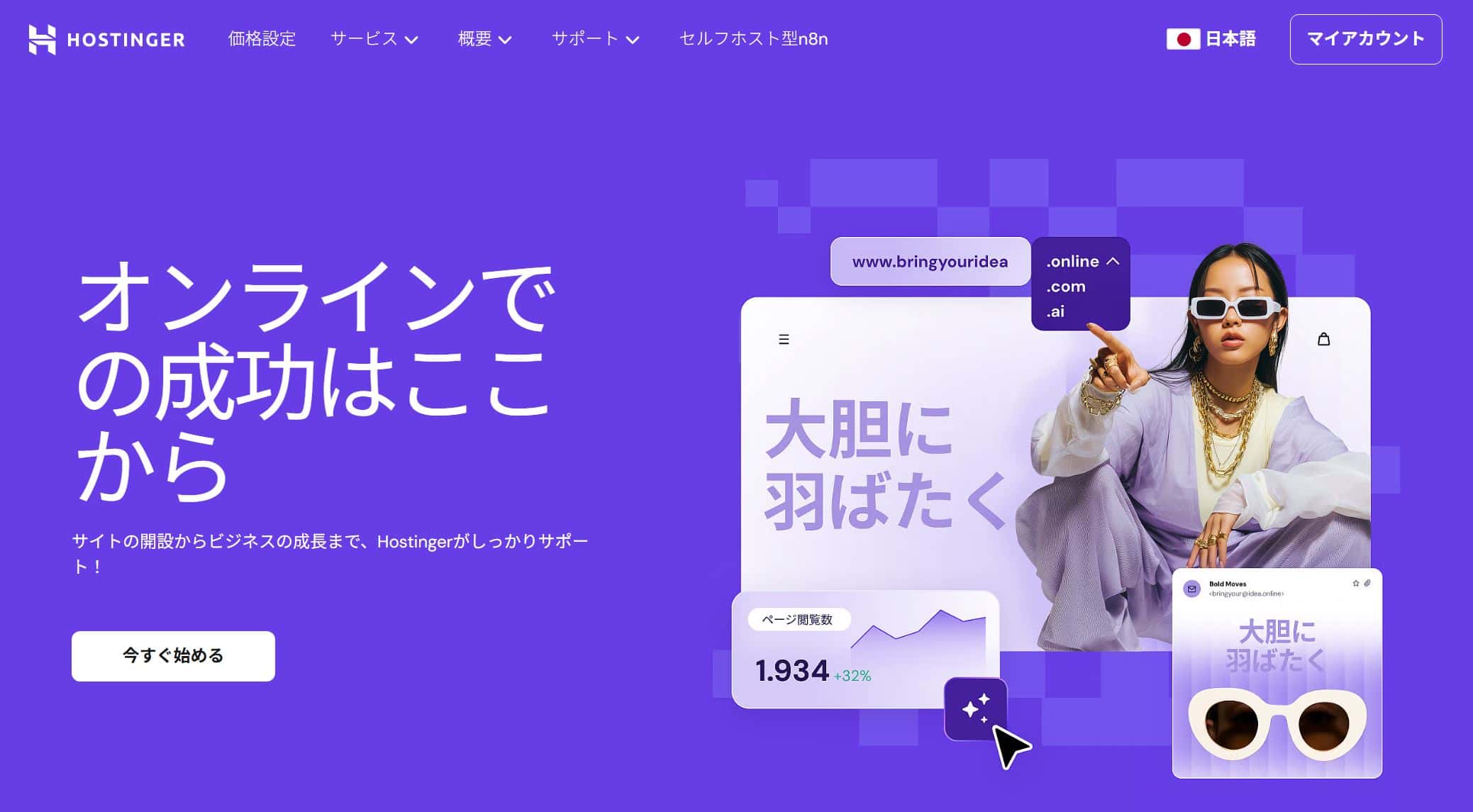 Hostingerは、低コストで高速・安定したサーバー環境を提供し、初心者でも簡単にWebサイトを運営できる点が魅力です。