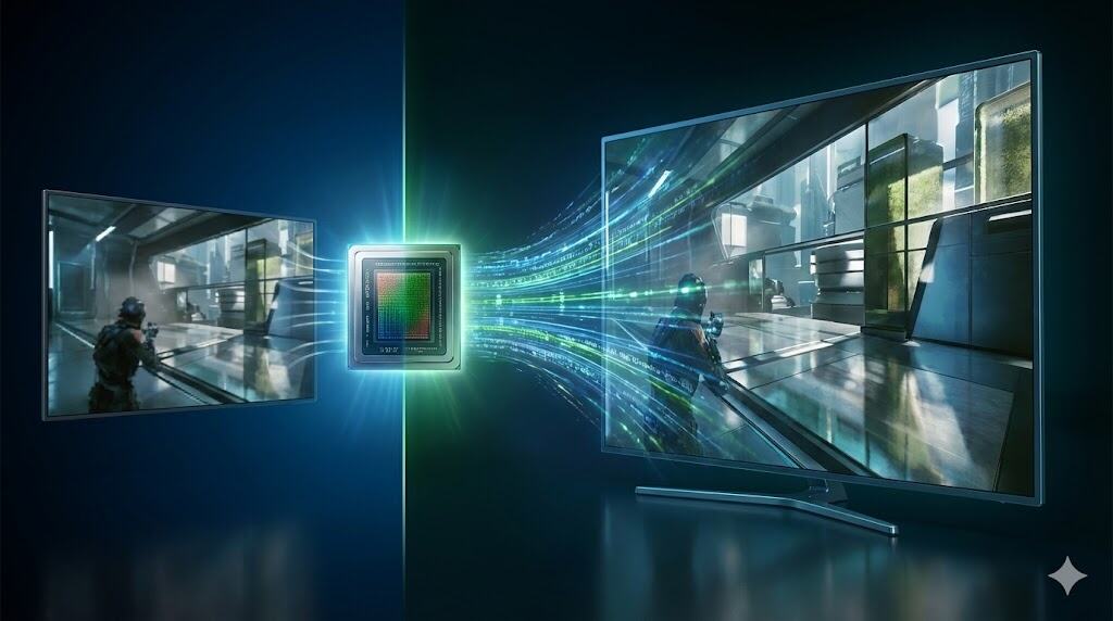最新技術「DLSS 4」は、AIが映像の隙間を予測して描き足す機能です。パラパラ漫画の枚数が増えるように動きがなめらかになるので、激しい動きのゲームでも敵を目で追いやすくなり、快適にプレイできます。