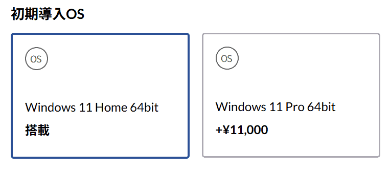 標準の「Windows 11 Home」で、ゲームもインターネットも全ての機能を問題なく使えます。「Pro」は会社の仕事で使う特別なセキュリティ機能が必要な人向けです。
