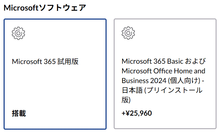 もし学校のレポートや仕事でWordやExcelが必須なら、+25,960円で追加するのがおすすめです。後からソフト単体を買うよりも安く済み、最初から使えるので設定の手間も省けます。すでに月額版(サブスク)を持っている人は追加不要です。