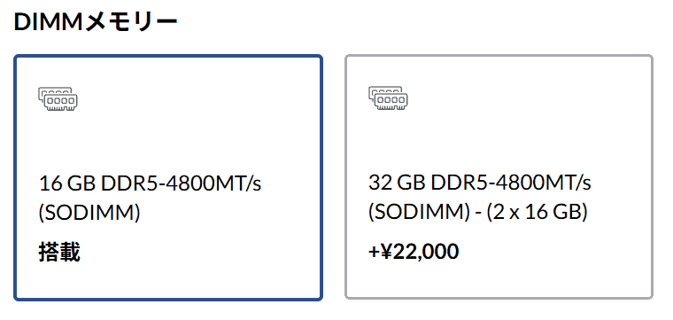 【メモリ】ゲーム中心なら標準の16GBでOK