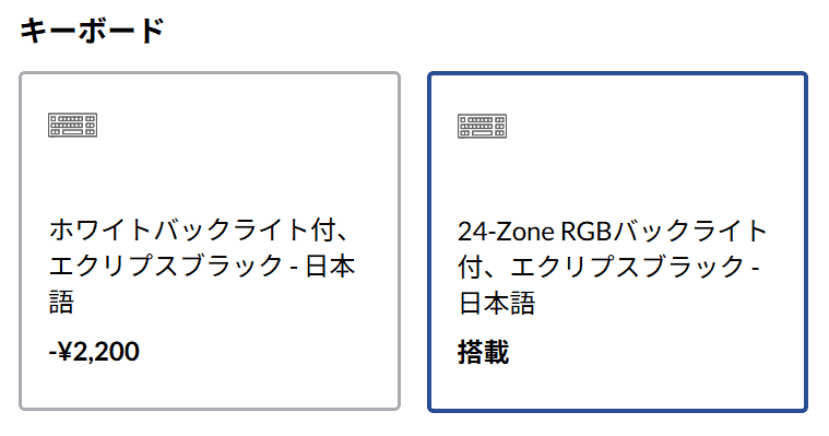 キーボードが虹色に光る「RGB」が標準ですが、もし派手な光り方が不要なら「ホワイト(白色)」に変更するのが裏技です。