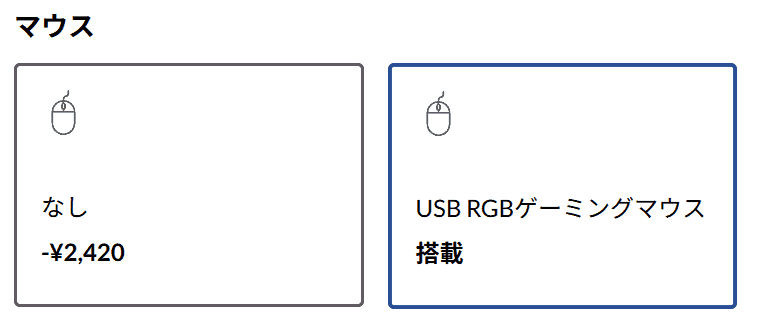 もし、すでにお気に入りのマウスを持っていたり、家電量販店などで自分で選びたい場合は「なし」を選んで2,420円節約するのが賢い方法です。