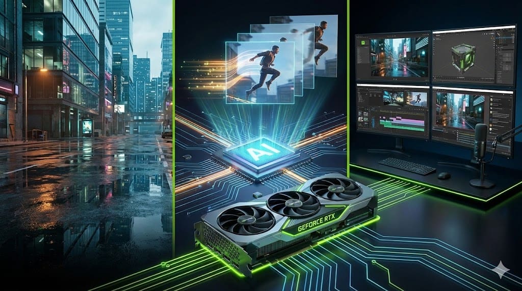 AIが映像を補正して、画質を落とさずに動きをスムーズにする「DLSS」技術に対応しています。動きの激しいゲームでも映像が止まったりせず、快適にプレイを続けられます。