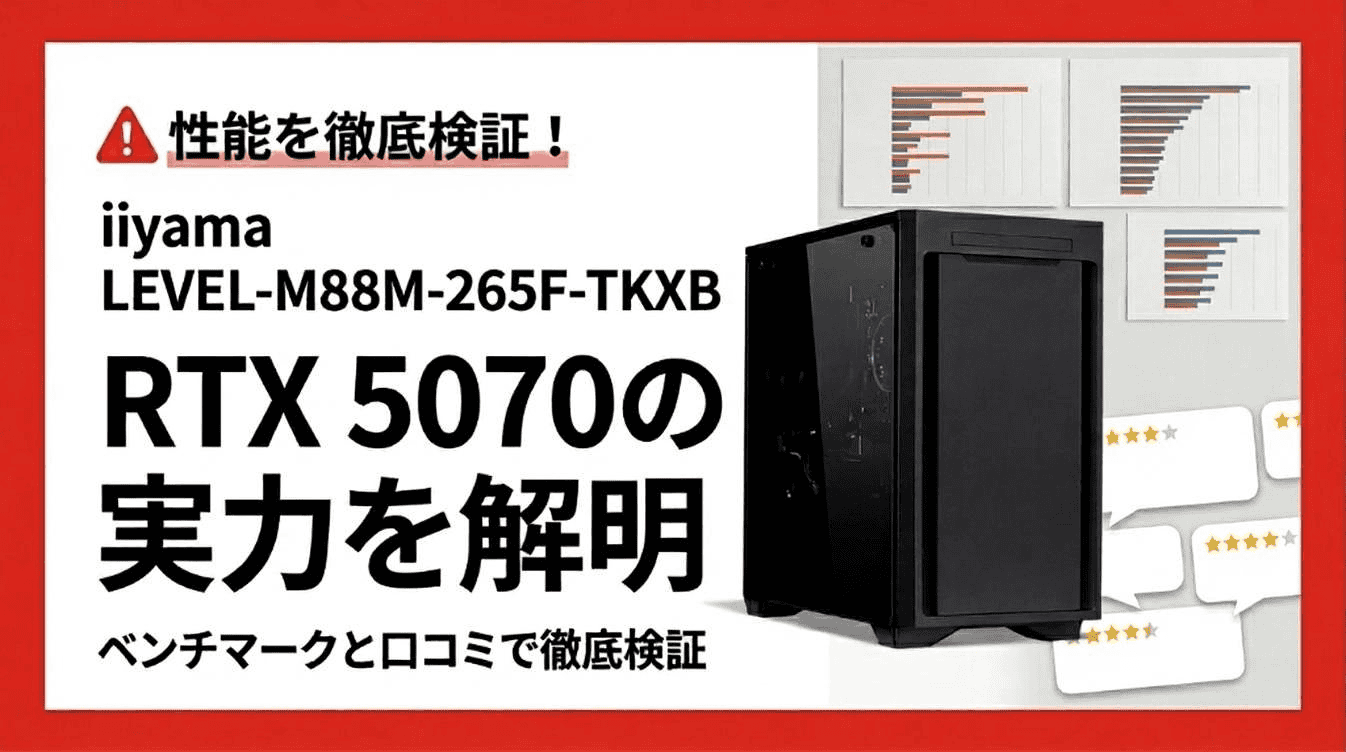 パソコン工房のゲーミングブランド「LEVEL∞(レベルインフィニティ)」から、Intel Core Ultra 7 265FとGeForce RTX 5070を組み合わせたミニタワーモデル「LEVEL-M88M-265F-TKXB」が登場しています。価格は364,800円~で、WQHDゲーミングをメインターゲットにした構成です。「RTX 5070ってぶっちゃけどうなの?」「この価格帯で買いなの?」という疑問を持っている方も多いと思います。
