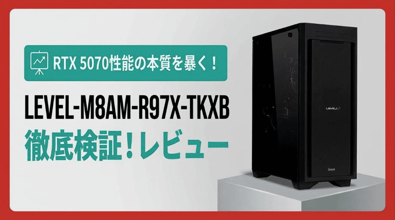 LEVEL-M8AM-R97X-TKXBは、「最新世代のパーツで手堅くまとめた、WQHDゲーマー向けの実力派モデル」です。Ryzen 7 9700Xの省電力・高効率とRTX 5070のWQHD向け性能の組み合わせは、派手さこそないものの実用性はピカイチ。