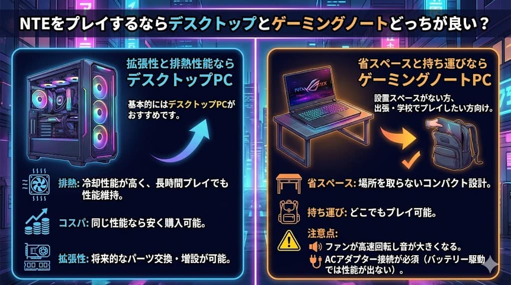 NTEをプレイするならデスクトップとゲーミングノートどっちが良い?