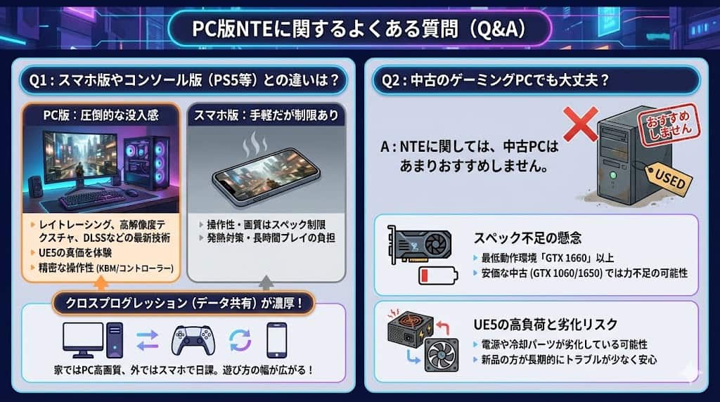 NTEに関しては、中古PCはあまりおすすめしません。