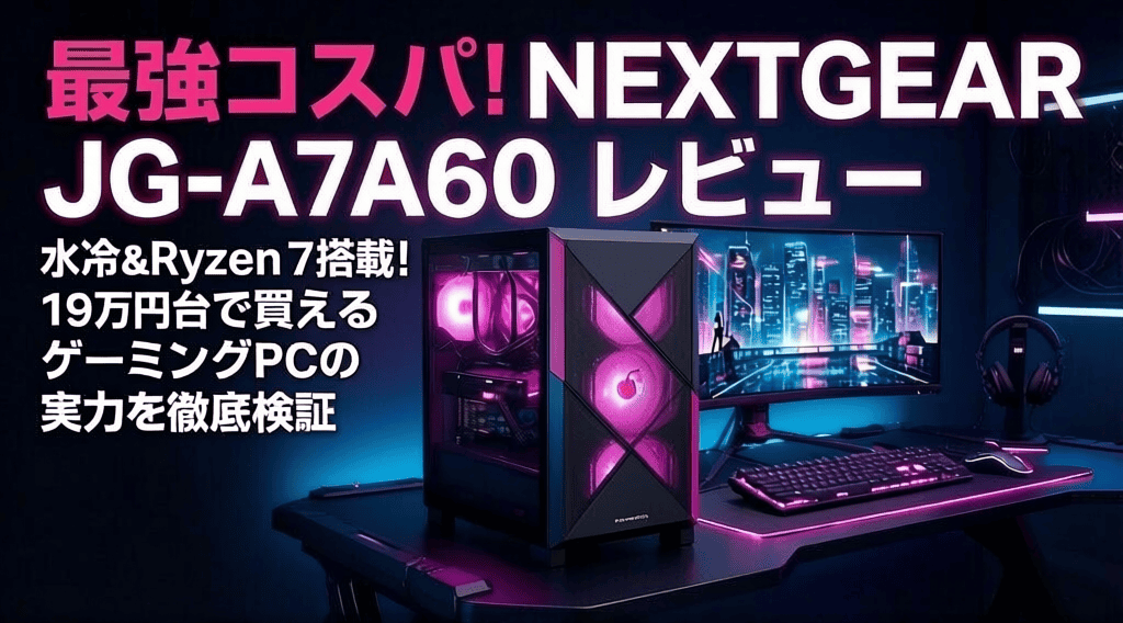 マウスコンピューターのゲーミングブランド「NEXTGEAR」から登場したNEXTGEAR JG-A7A60は、AMD Ryzen 7 5700Xと最新のRADEON RX 9060を搭載したミニタワー型のゲーミングPCです。水冷CPUクーラー標準搭載、ガラスサイドパネル、そして3年間の無償保証が付いて194,800円(税込)という価格設定は、「初めてのゲーミングPCが欲しいけど、どれを選べばいいかわからない」という方にとって、かなり魅力的な選択肢になるはずです。