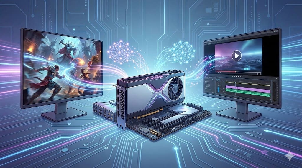 「FSR 4」などの最新AI技術に対応しており、画質を保ったまま映像のコマ数を増やすことができます。これにより、パソコンへの負担を抑えつつ、まるで上位モデルのような「ヌルヌル」とした動きを実現します。