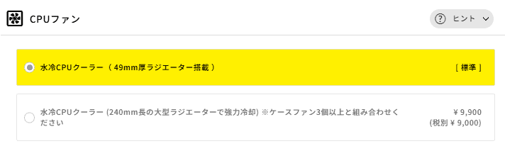 このモデルは、すでに高性能な「水冷CPUクーラー」が標準で装備されています。空気で冷やす空冷式よりも冷却力が高く、音も静かなのが特徴です。そのため、通常の使用であればカスタマイズの必要はありません。