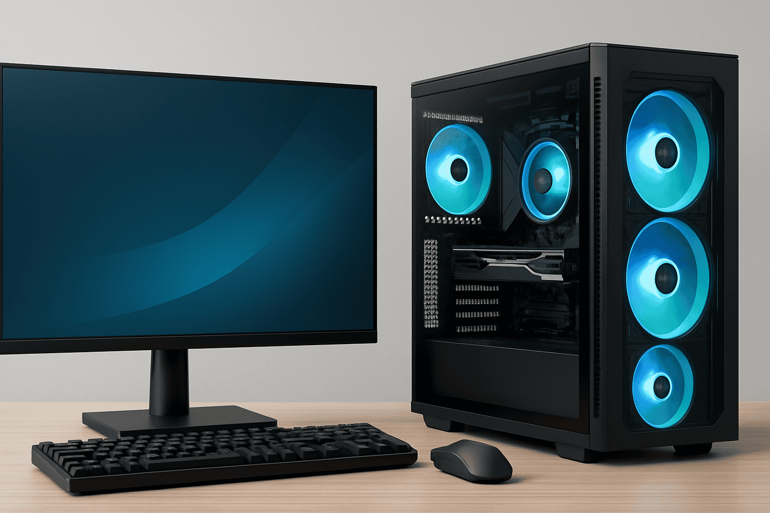 - ガラスパネル標準: 内部が見える強化ガラスサイドパネルを標準装備しており、デスク上の見栄えもゲーミングPCらしい高級感があります。