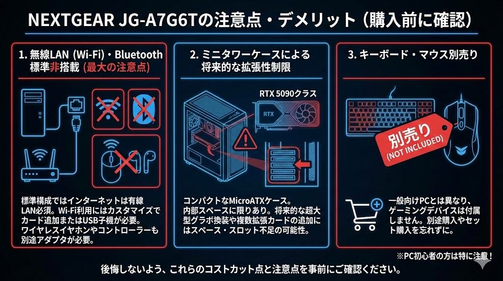 NEXTGEAR JG-A7G6Tの気になるところ・注意点(デメリット)
