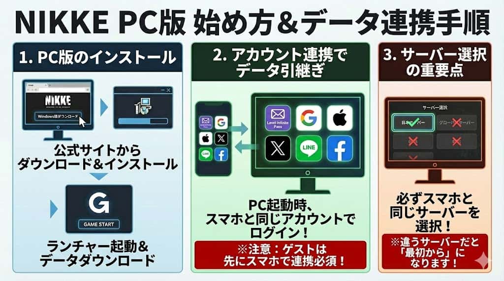 NIKKE PC版の始め方とアカウント連携(データ共有)の手順