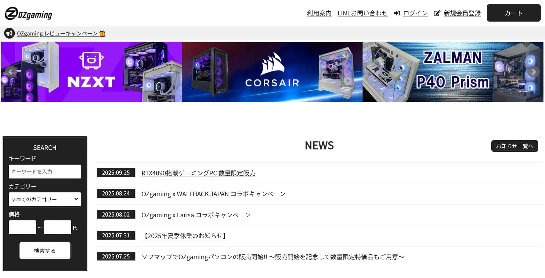 「プロレベルのスペックがこの価格。」をコンセプトに、業界最安値クラスのゲーミングPCを販売するBTOメーカーのOZgaming。