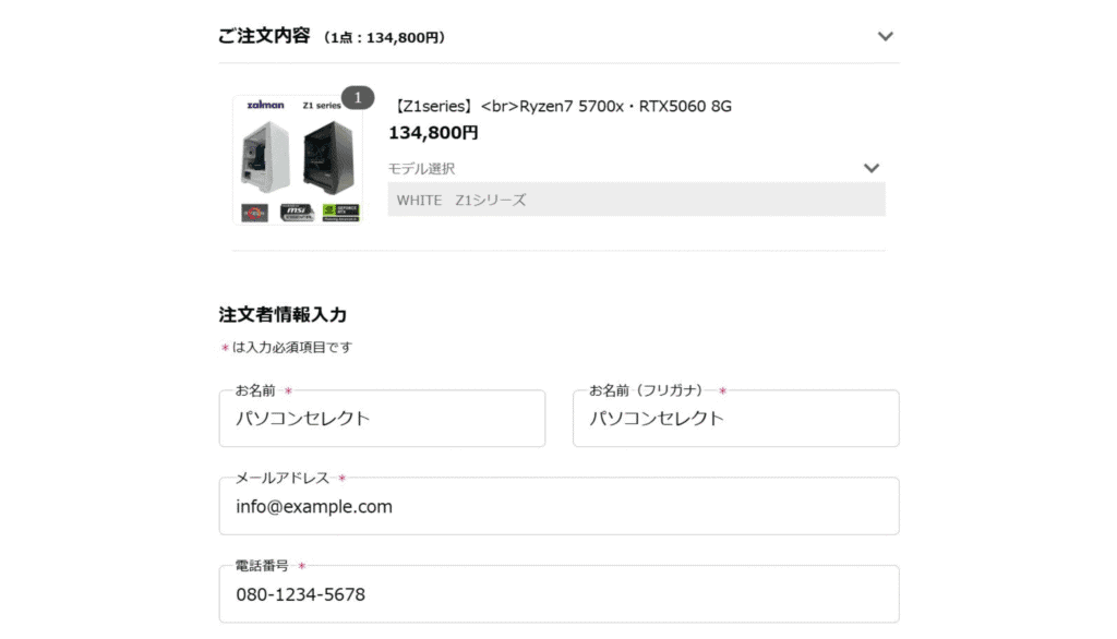 次の画面でゲスト購入または会員登録を選択し、注文者の情報を入力します。