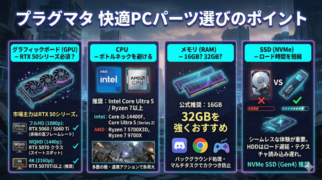 プラグマタを快適に遊ぶためのPCパーツ選びのポイント