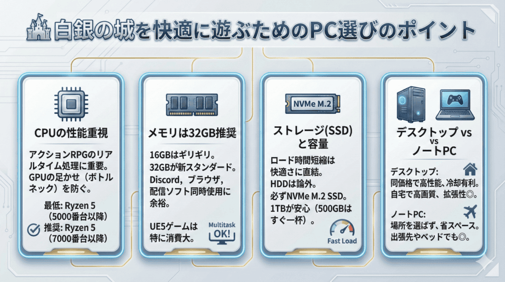 まとめ:自分にぴったりのPCで白銀の城の世界を冒険しよう
