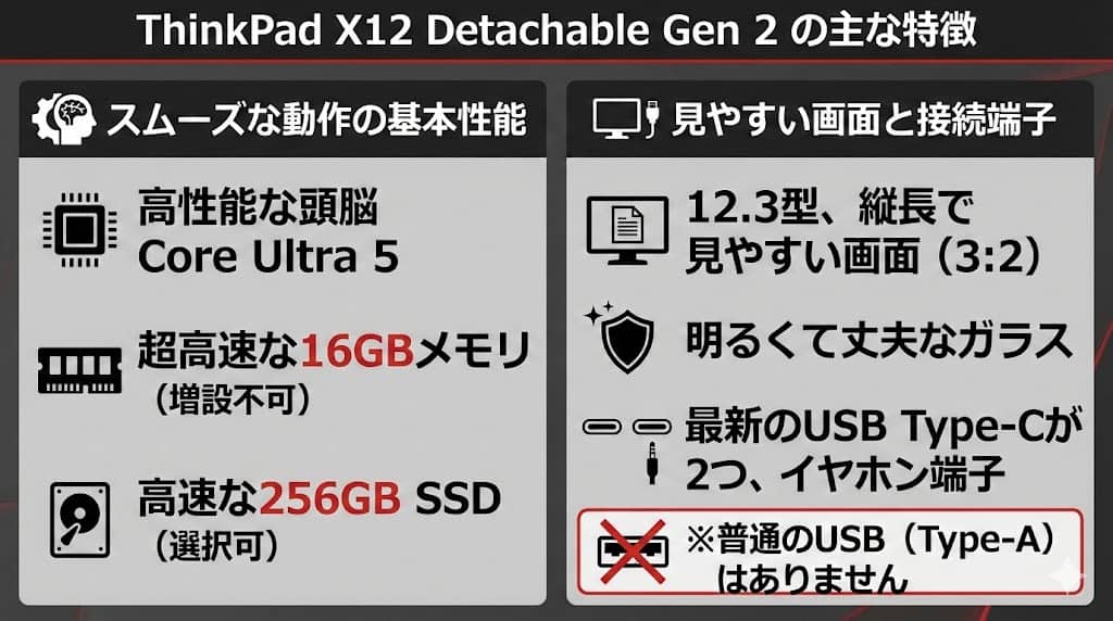 ThinkPad X12 Detachable Gen 2のスペックと評判は?|Core Ultra搭載の2-in-1ノートPCを徹底レビュー