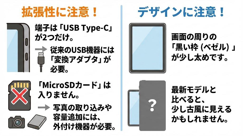 USB Type-Cポートのみの構成とMicroSDスロットの不在