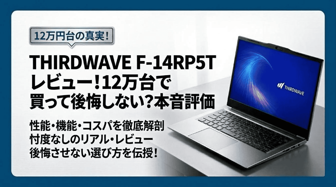 ドスパラ(サードウェーブ)の14型ノートPC「THIRDWAVE F-14RP5T」は、Core i5-1335U・16GBメモリ・500GB NVMe SSDという”ちょうどいい”スペックに、約1.3kgの軽さと127,980円(税込)の価格を両立させた1台です。オフィスワークや動画視聴、ちょっとした写真編集まで、日常のほとんどの作業を快適にこなせます。