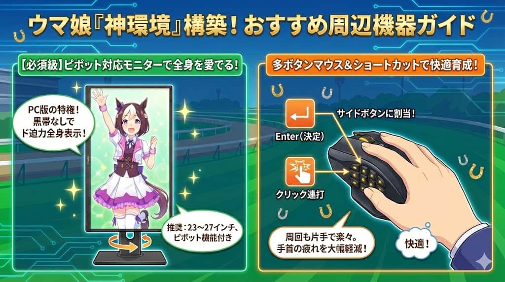 PC本体だけでなく、周辺機器を整えることでウマ娘ライフはさらに充実します。
