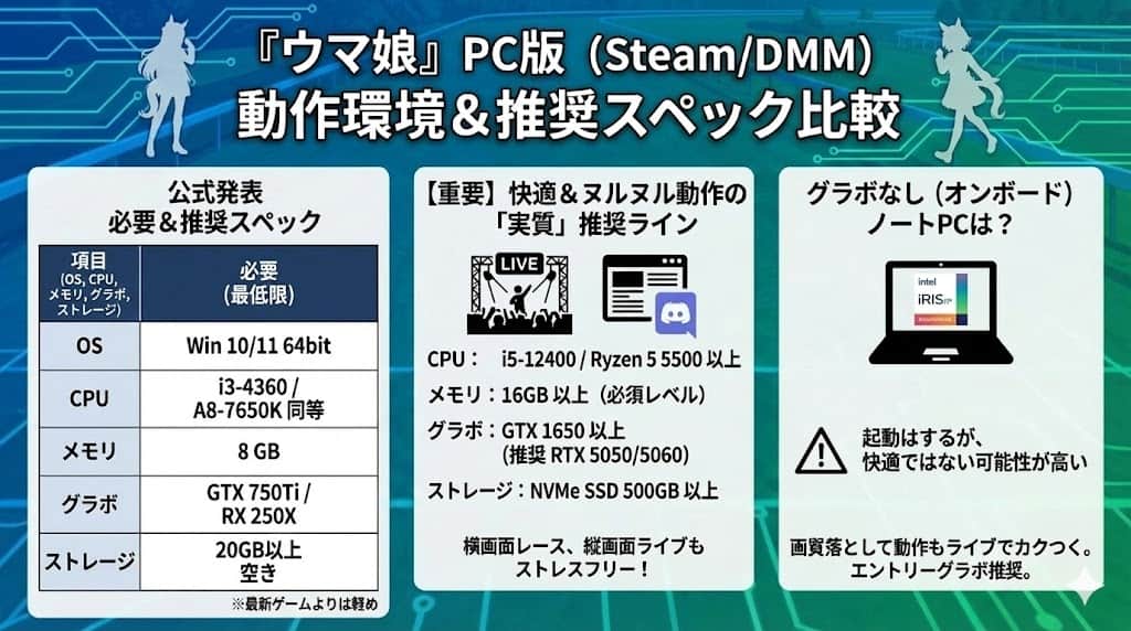 『ウマ娘』PC版(Steam/DMM)の推奨スペック・必要動作環境